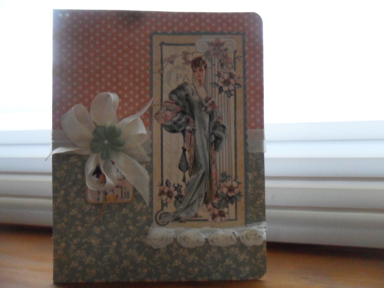 Pattern papers, tag, and cardstock image are from Graphic 45's "A Lady's Diary" line, rosette trim is Maya Road, ribbon, pearls,and flower are all from my stash.
